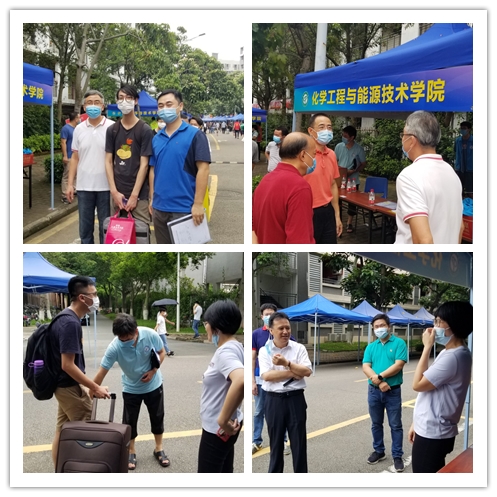本次返校毕业生接待处分别为莞博社区门口,办公室,储物室三处,每处接待处都有教职工与志愿者负责接待并协助毕业生办理毕业事务。上午,马宏伟、吕琦元、杨敏林来到太阳城娱乐设于莞博社区门口的接待处,与太阳城娱乐部分教职工迎接返校员工,帮助员工搬运行李,同他们攀谈返校感想,并预祝化能师生返校成功。随后,返校毕业生到其他两个接待处上交健康卡与领取毕业纪念品。在整个过程中,师生情浓,同学之间互帮互助,温暖充斥校园之中。