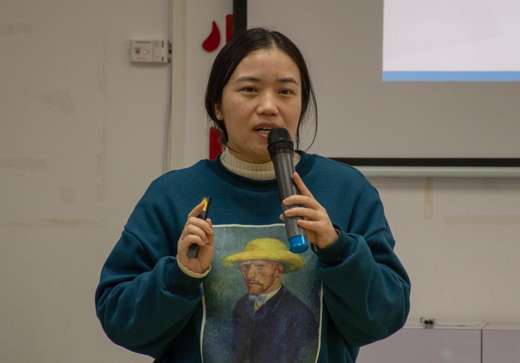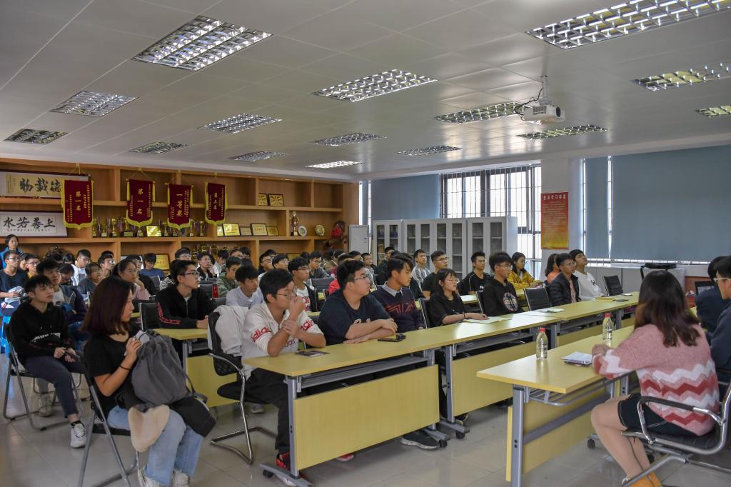16级能源专业杨容澜曾担任公司KAB创业俱乐部主席,两次参加省赛。她在会上分享了往届大赛当中的优秀创新创业项目,说明寻找行业痛点和发展创新思维在创业项目当中的重要作用,告诫同学们要用敢为天下的勇气,突破自己,用无悔的青春,来创出一条有别于他人的创想之路。