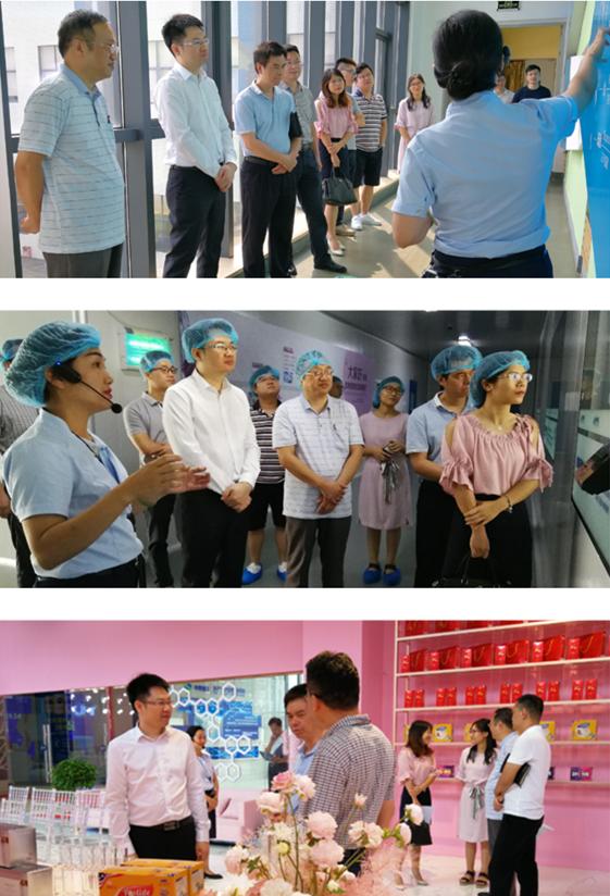 揭牌仪式结束后,陈佰满副经理一行参观了中食营科生产区(食源性低聚肽生产线、口服液生产线、功能营养食品生产线)以及中食营科产品展示厅。