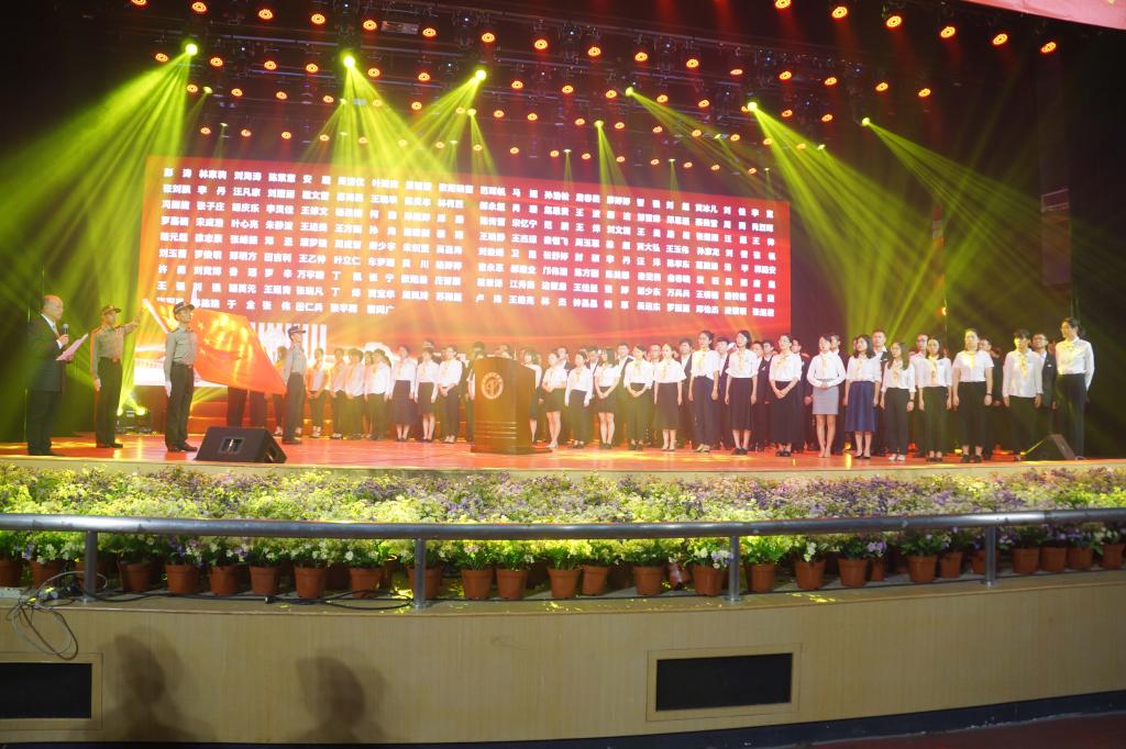 太阳城娱乐王波等18位新进教职工登台,在成洪波监誓、马宏伟领誓、全场师生见证下,进行了庄严的入职宣誓。