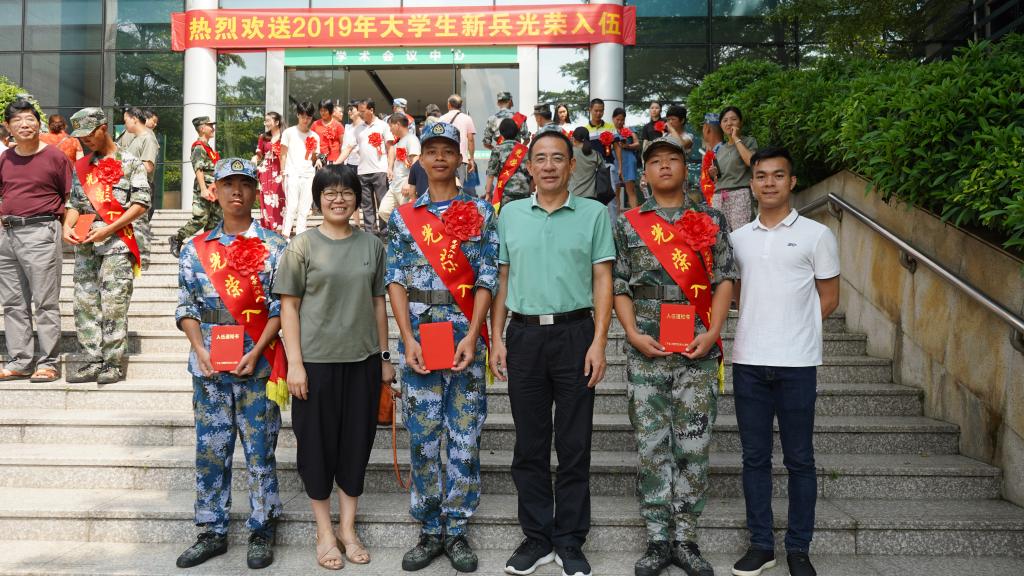 夏勇对3名准新兵积极投身国防建设给予充分肯定,代表全院师生将静候同学们在部队传回佳音。最后,两位老师为入伍员工赠送了院徽和纪念品。