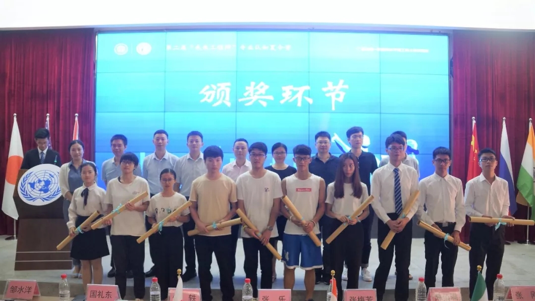 最后,经评委评议,第五组五雷轰顶队获得了模拟十国行业领袖峰会优秀团队称号并获得表彰。同学们手持奖品与评委老师们合影留念。