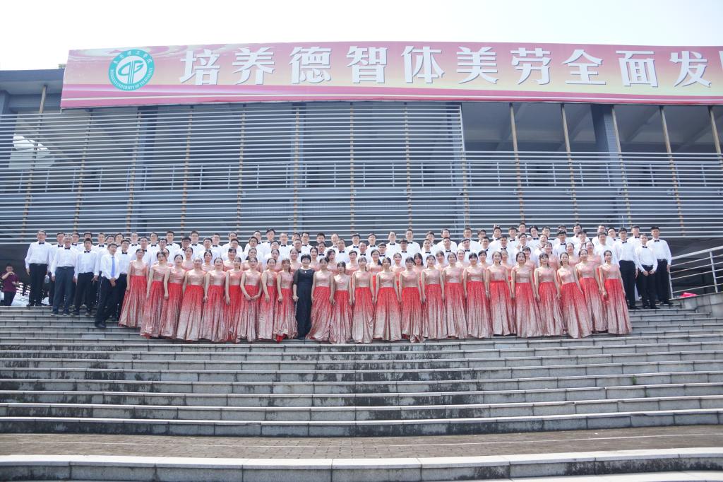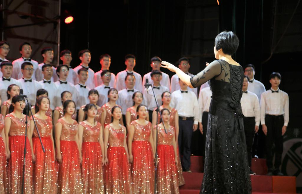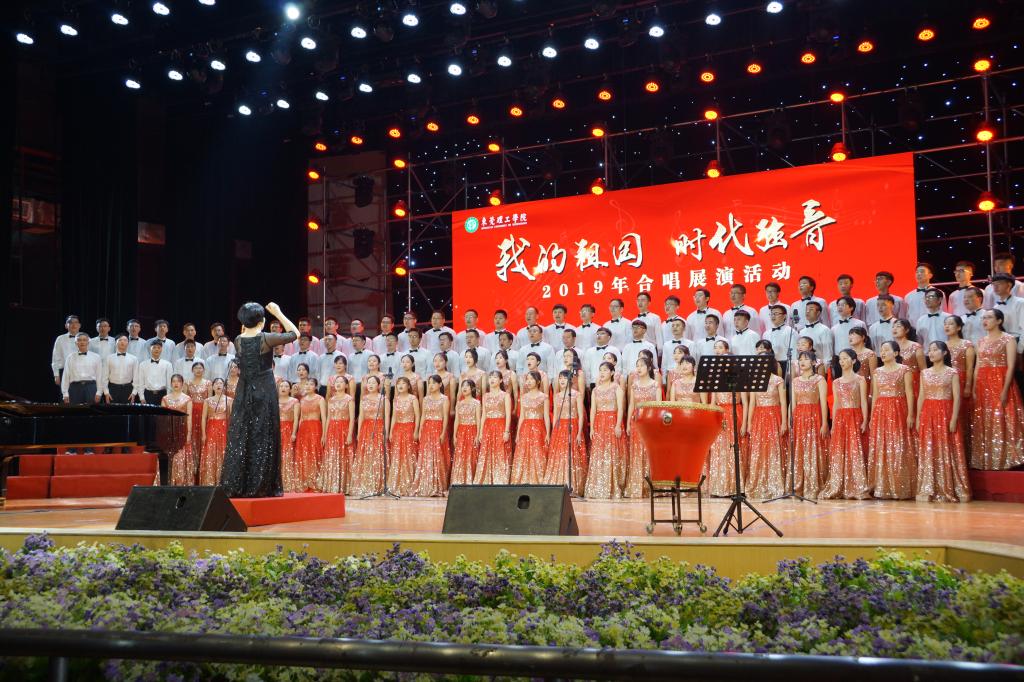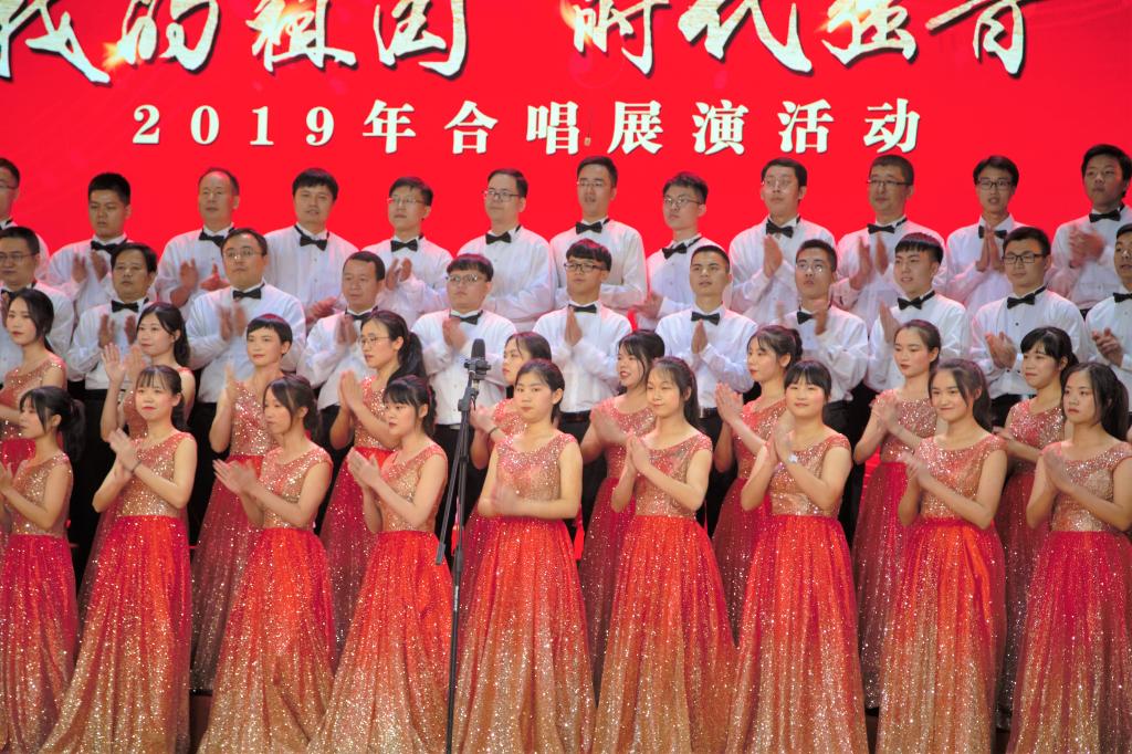 歌曲前奏在师生慷慨激昂的朗诵声中缓缓响起,点燃了大家的激情。在公司党总支副书记柳卓君优雅大方的指挥下,伴随着优美娴熟的钢琴伴奏,太阳城娱乐合唱队队员们饱含深情地演唱了《祖国给我理想》,歌曲热情奔放,活力十足,在明快的节奏下,队员们富有感染力的声音配上整齐划一的动作,将歌曲声情并茂地演绎出来,不仅为现场师生观众奉献一出精彩的视听盛宴,也展现出公司同学朝气蓬勃、昂扬向上的精神面貌,曲目结束后现场响起热烈的掌声。