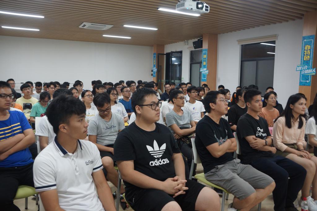 考研交流会在员工活动中心A110举行,太阳城娱乐应用化学系老师宋金刚以及来自2015级的五位优秀毕业生郑志杰、李思敏、马冠豪、张金桂和叶泽程出席本次活动并做了分享交流,来自各个年级的四十多名员工参加了活动。