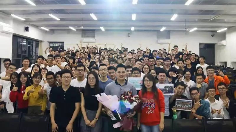 10月29日晚,2018级应用化学卓越班班会进行到尾声之际,教室里忽然涌入许多张熟悉的面孔,有员工跑上前,给正站在讲台上的廖文波老师献上了深情的拥抱和祝福的鲜花。当回忆起这一幕,眼前的廖文波老师很是动容,他对记者说:“作为老师,那一刻我落泪了,能得到员工这样的认可,我觉得一切的付出都是值得的。”得知廖文波老师即将要调到教务处任职后,应用化学卓越班的四个年级七个班级共189位同学悄悄地为廖老师精心策划了这场欢送会。